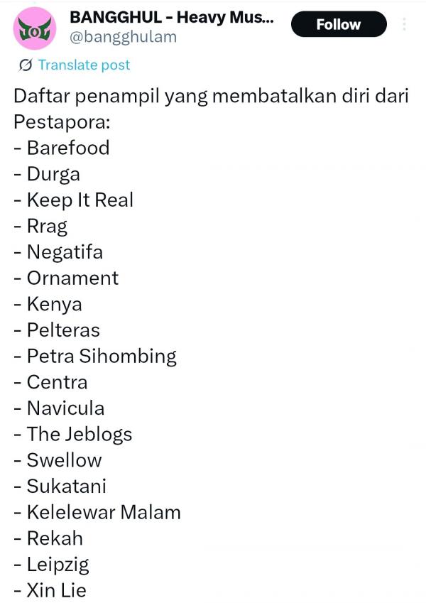 Daftar Musisi Batal Manggung di Pestapora, Apa Penyebabnya?