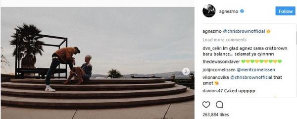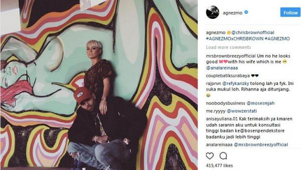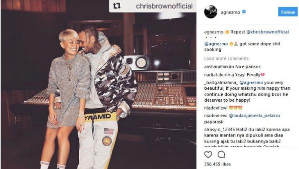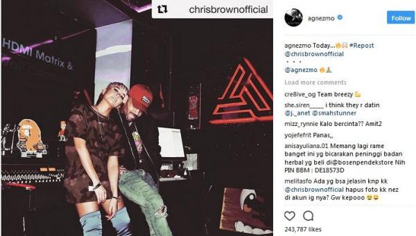 Di hari yang sama, Agnez juga me-repost foto yang diunggah Brown. "Today #Repost @chrisbrownofficial ・・・ @agnezmo."