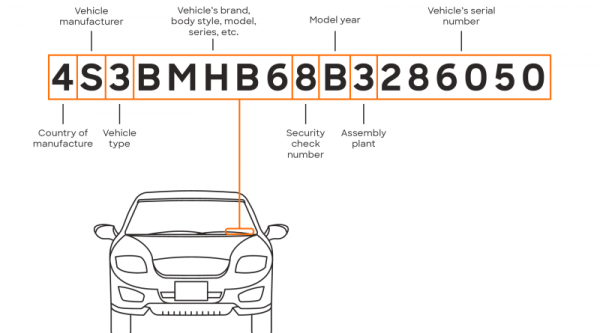 Nomor rangka mobil biasanya terletak di beberapa bagian kendaraan, seperti dashboard dekat kaca depan, pintu samping kemudi, blok mesin, dan atau transmisi.