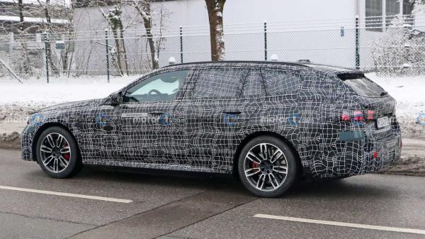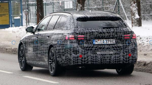 Dikutip dari Motor1, Selasa (3/1/2023), sebuah station wagon yang diduga BMW i5 Touring sedang menjalani pengetesan. Mobil ini melakukan penyamaran tebal dengan stiker kamuflase.