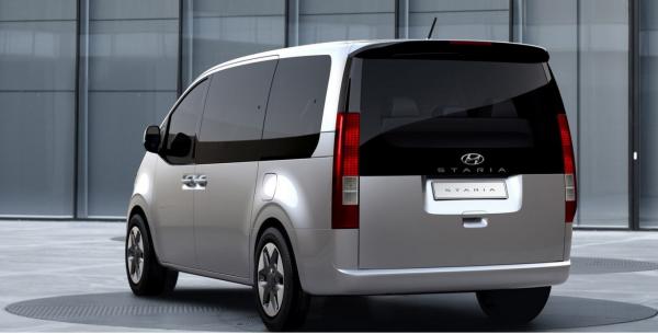 Desain eksterior Staria menampilkan siluet futuristik, kesan bersih, ramping, dan menyerupai pesawat luar angkasa. Bagian depan Staria memberikan tampilan grille yang berani.