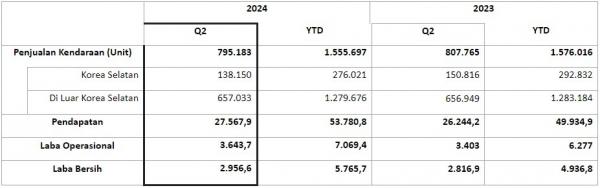 "Penjualan per kuartal tercatat sedikit menurun dibandingkan dengan periode yang sama tahun lalu yang disebabkan adanya penghentian sementara produksi di beberapa pabrik Kia guna meningkatkan fasilitas untuk produksi kendaraan listrik," kata Kia dalam keterangan tertulisnya, Selasa (6/8/2024).