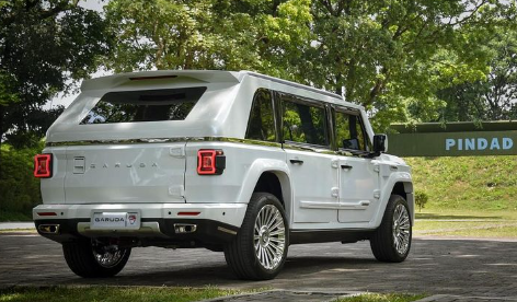 SUV ini terbilang kuat dan mampu melewati tantangan apapun di medan berat. Garuda sudah menggunakan ban berukuran R21 tipe Run Flat Tyre (RFT) yang bisa tetap melaju meski mengalami kebocoran di perjalanan.