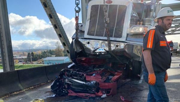 Berbicara kepada media Jalopnik, Oliphant melaporkan pengemudi Altima merah sedang melambat mengikuti truk lain yang melintasi jembatan. Namun, tiba-tiba ditabrak truk lain dari belakang.
