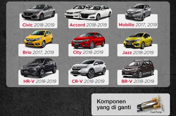 Honda Indonesia memutuskan melakukan recall terhadap ribuan kendaraan mulai dari model 1996 sampai 2019. Ini diakibatkan tiga komponen yang perlu diganti seperti inflator airbag, fuel pump, dan master cylinder assy.