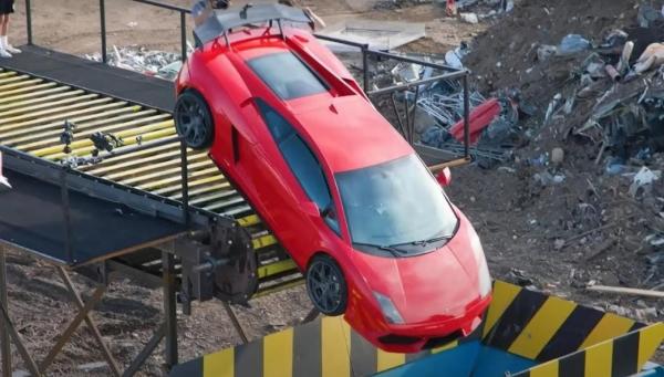 Youtuber Amerika Hancurkan Lamborghini Harga Rp3 Miliaran pakai Mesin Pencabik