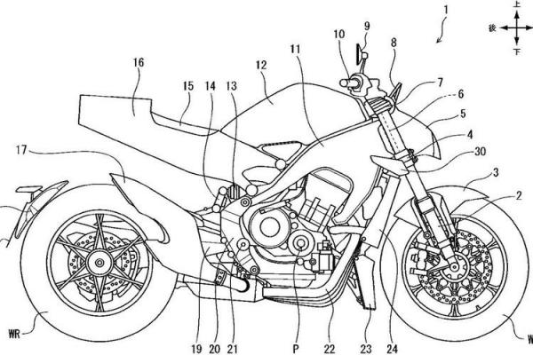 Belum lama ini Honda juga mengunggah gambar paten motor street fighter dengan mesin empat silinder segaris. Terlihat adanya winglet di bagian deapn untuk menambah aerodinamis motor.