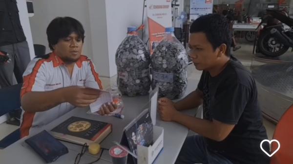 JAKARTA, vozpublica.id - Viral seorang pedagang plastik di pasar membeli motor sport pakai uang koin sebanyak tiga galon. Pria tersebut memanggul sendiri galon berisi penuh uang recehan itu ke dealer.