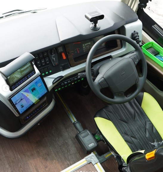 Masuk ke bagian dalam, kesan mewah terpancar dari kabin kru dan sopir yang dibalut dengan material aksen kayu pada lantainya. Sementara dasbor menggunakan perpaduan warna hitam dan silver yang memberikan kesan elegan dan sporty.