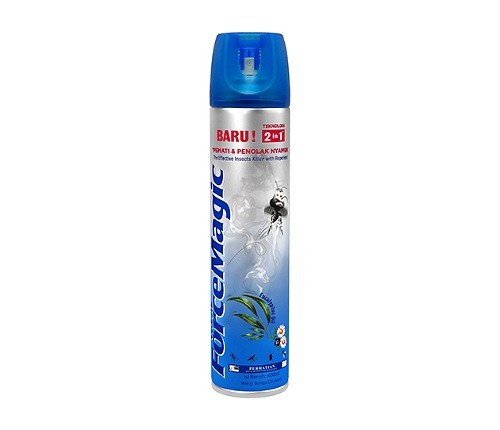 Force Magic efektif melumpuhkan dan mematikan nyamuk dan serangga sasaran. Force Magic mengandung bahan aktif jenis synthetic pyrethroid (Prallethrin dan Permethrin). Bahan aktif synthetic pyrethroid ini sangat ampuh mematikan serangga dan lebih aman bagi mamalia (manusia) karena mudah dikeluarkan dari dalam tubuh melalui feces, urine dan saluran pernafasan. Miliki produk ini seharga Rp90.000 saja untuk 2 produk.