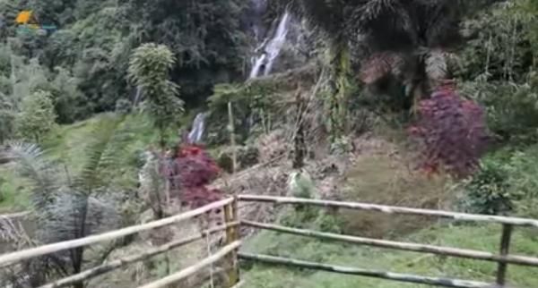 “Air jatuhnya ini berasal dari sungai Datar Kokoh," ujar sang pemilik video.